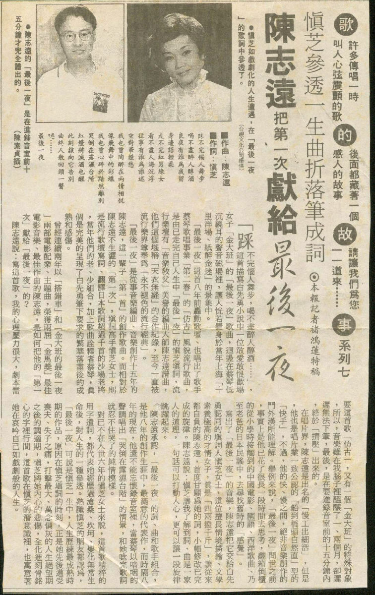1993年中國時報,歌的故事~最後一夜,記者:褚鴻蓮,
