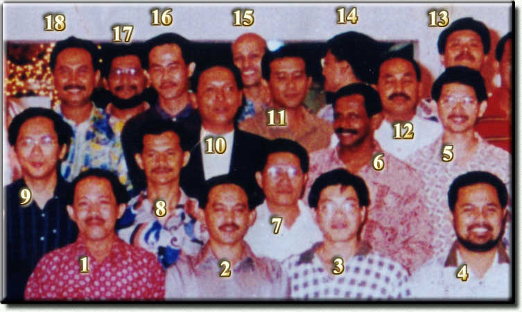 (1) Nor Azman Ghazali A, (2) Abd Rahim Mohammad G, (3) Ow Kiat Bin C, (4) Sahari Abdul Aziz B???, (5) Ruzaimi Md Nor E, (6) S Ananthan F, (7) Mohd Jalal Karis C, (8) Hasan Ali E, (9) Yaakub Saleh E, (10) Zulkarnain Abu Bakar C, (11) Baharudin Abu Bakar A, (12) Kabol Surat B, (13) Zambrose Mohd Zain C, (14) Nazri Abu Bakar C, (15) Dil Kumar Subramaniam H, (16) Yahaya Othman A, (17) Sharir Ahmad D, (18) Mohd Nasir Yahya G,