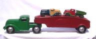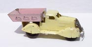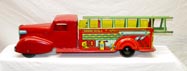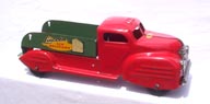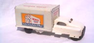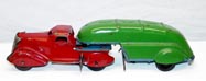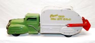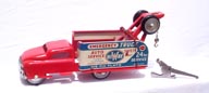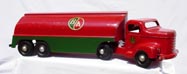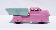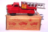 | The Richmond Mfg Co. of Richmond, Michigan produced this wrecker and dump truck sometime in the late 1940's. But did you know Richmond trucks are of the same design as cabover toy trucks produced by Ellwood Toys of Ontatio, Canada? To further complicate things, some Ellwood toys were also sold with Lincoln and Anotherwood labels. Ellwood also made automotive parts and later purchased Lincoln dies when Lincoln went out of business. Richmond ceased operations in 1948. |