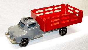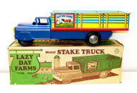 | Marx Lazy Days Farms stake truck, circa 1959-61. This design was about the last of the nice Marx steel trucks. |