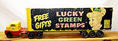 | Rare early 1960's era Lucky Green Stamps trailer truck made in Canada by Husky. This is the only one I have ever seen. |