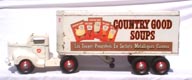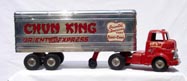 | Did you know Wyandotte made some private label advertising trucks which are very rare to find? The Chun King Express, Wilderness Pie Fillings, and Coffman Ornamental Iron trucks are among several rare and original factory-produced speciality advertising trucks circa 1952-1954. I have a photograph of a 1952 food industry trade show showing a display of Wyandotte Chun King trucks. During the early 1950's Chun King owned Northland Foods which produced Wilderness Pie Fillings. As a promotion, the Chun King & Wilderness trucks were sent to grocery store managers loaded with sample products. There were at least 2 others: a Coca Cola truck and a CCC truck lines. |