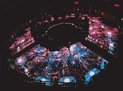 fires of nuclear fusion Static electricity weaves a crackling web over the coolant of a particle beam fusion accelerator. The beams hammer a pellet made from deuterium and tritium with five trillion watts per square centimetre, collapsing it in a nuclear fusion reaction. The accelerator, at Sandia Laboratories, New Mexico, is the only one in the world. |