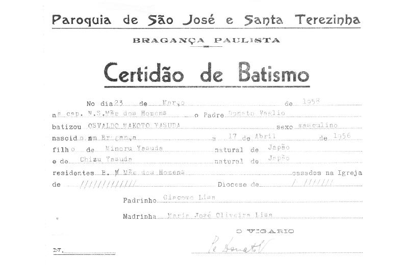 Nascimento em Bragaça Paulista, SP. Pai Minoru Yasuda e Mãe Chizu Yasuda.