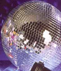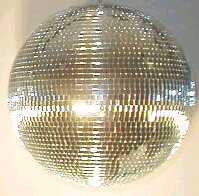 If you watched the images on the walls carefully you could tell that the images were sometimes truncated. For example, the images of H2O molecules were sharply in focus, but sometimes had part of the image chopped off. Although I don't know for sure, most ATIS projections must have been done by shining a slide containing multiple tiny copies of the desired image (e.g., snowflake, molecule) onto a disco ball. Thus the projector could be adjusted to focus at any desired distance, and images didn't have to be placed on the ball itself. Some image truncation would occur at edges of the mirrors, but enough of the intact images would fall within the area of a single mirror to be convincing. To get the swirling effects of many small objects flowing in many directions at once, multiple balls were used with overlapping fields. This was a rather nice effect, especially considering the relatively low cost.