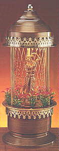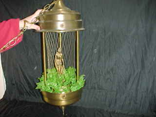 Rain lamps are starting to make a comeback, just as lava lamps did. Original rain lamps from the '70s are commonly available on eBay for $15-100, depending on size, and are popular. The object chosen to be displayed inside ranged from Grecian style statues, to the Virgin Mary, to children in the rain, to clocks, to watermills. The fibers can be vertical or slanted, and can be found in one or two layers. The ATIS rain lamp fibers were slanted to the left, as in most rain lamps.