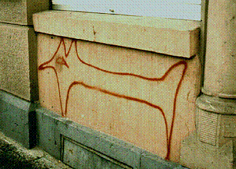 Graffiti bestand hier noch aus einfachsten Strichen.