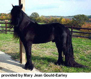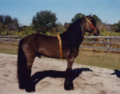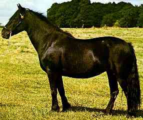 | Herkomst: Noord Engeland Geschiedenis en informatie: De Fell pony is familie van de Dales pony. Het verschil is dat de Fell pony kleiner en lichter is en zuiverder bloed heeft. Toch is ook de Fell een enorm sterke pony. De Fell pony is een pony die goed kan overleven in de bergen en woeste gronden. Hij wordt nog steeds in de heuvels gefokt en loopt daar vrij rond, hoewel er ook Fell pony�s op boerderijen en priv� stoeterijen gefokt worden. De Fell pony werd als draver gebruikt, als pakpony in de loodmijnen en bij het hoeden van schapen. Uiterlijk: Bouw: De Fell pony is wel elegant maar niet fijn gebouwd. De houding is trots. Hoofd: Het hoofd is goed gevormd. Het voorhoofd is breed en loopt een beetje taps toe naar de snuit het profiel is recht of een beetje bol.De kaan en keel zijn fijn. De ogen zijn sprekend, iets uitpuilend met een vriendelijke intelligente uitdrukking, de neusgaten groot en de oren zijn klein en staan vrij ver uit elkaar. Hals: Sterk, maar niet te zwaar, met een goede teugellengte. Schouders: Goed en rond Achterhand: Sterk, de staart is mooi ingeplant. Benen: Sterk, met veel vlak bot onder de knie Hoeven: Goedgevormd, met kenmerken blauw hoorn. Kleur: Zwart komt het meest voor, maar schimmel en bruin zijn ook toegestaan. Witte aftekeningen zijn niet gewenst, maar een klein sterretje en kleine witte aftekeningen op de benen zijn toegestaan. Hoogte: Niet hoger dan 1.42 meter Beweging: De knieactie is prachtig en de passen zijn lang en soepel. De Fell staat zelfs bekend om zijn goede gangen, de stap is actief en de draf is snel. Karakter en bijzonderheden: De Fell pony heeft een ijzeren gestel en een stoer karakter, hij is vriendelijk en gewillig, maar wel vastberaden. Gebruik: De Fell pony wordt veel gebruikt voor toeristische trektochten. Verder is het een ideale kinderpony en kan hij ook goed in het tuig. Soms wordt hij nog door boeren gebruikt voor het hoeden van schapen. Invloeden: Keltische ponytype Friezen Galloway Bronvermelding: Paardenrassen encyclopedie, Susan McBane Het Paardenhandboek, Judith Draper Fell links: Engels www.raresteeds.com/FellPonySociety www.laurelhighland.com www.fellponies.com Duits mitglied.tripod.de/fellpony Uw Fell pony link hierbij?? Stuur me een mailtje en het wordt geregeld Terug |