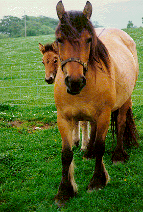 | Herkomst: De Highlander komt uit Schotland. Geschiedenis en informatie: De Schotse Highlandpony heeft van alle Engelse Mountain en Moorland pony�s het vriendelijkste karakter, dit is waarschijnlijk omdat het ras al honderden jaren dichter bij de mens heeft geleefd dan de andere inheemse. De Highlander is een van de zwaarste en sterkste Britse Berg- en heidepony's. Behalve op de Highlands zelf, komen Highland pony's voor op de eilanden, Skye, Jura, Uist, Barra, Harris, Tiree, Lewis, Arran, Rhum, Islay, en Mull, op elk eiland komt dan steeds weer een iets ander type voor, omdat de plaatselijke bevolking de fokpony�s selecteerde naar hun eigen wensen. De Highlandpony is ontstaan uit diverse kruisingen met vooral Clydesdale en Arabierbloed. De Hertogen van de plaats Atholl waren eeuwenlang de meest invloedrijke fokkers van Highlanders. Zij brachten waarschijnlijk al in de zestiende eeuw Oosters bloed in. Oorspronkelijk waren er twee hoofdtypen Highlandpony�s, een klein eilandtype en een groter zwaarder vastelandtype, dat Garron heet. Tegenwoordig wordt er maar ��n type erkend door de Highland Pony Society. Dat komt doordat de twee types door onderlinge kruisingen verdwenen zijn, hoewel er nog steeds grote en kleine Highlanders zijn. Highlanders zijn heel lang gebruikt als boeren- en landgoedpony�s, verder zijn ze ook gebruikt voor het Schotse leger. Uiterlijk: Bouw: Een gedrongen bouw Benen: Zwaar gespierd en sterk, met korte pijpen, vlakke harde botten. Hoeven: Goed gevormd, donker en hard Hoofd: Het hoofd is klein, maar breed met een recht profiel, het wordt goed gedragen. De oren zijn kort, de ogen vriendelijk en alert. De neusgaten zijn bewegelijk en groot en de snuit is klein. Hals: Gebogen en met een slanke keel Schouders: Goed geplaatst Achterhand: Krachtig, met sterke, goed ontwikkelde dijen en schenkels Behang, manen en staart: Licht, zijdeachtig behang dat uitloopt in een opvallende toef bij de vetlok. Lange, zijdeachtige manen en staart. Kleur: Vaak heeft de Highlandpony een vaalkleur. Maar ook schimmel, bruin en vos komen voor. Wat bijzonder is, is dat ze vaak primitieve aftekeningen hebben, zoals een aalstreep en een zebrastreep. Schofthoogte: Deze gaat tot 1.47 meter maximaal. Beweging: De gangen zijn ruim en gemakkelijk. De Higlander heeft een zekere tred. Karakter en bijzonderheden: Highlanders hebben een vriendelijk en meegaand karakter, maar ze zijn wel levenslustig en hebben een echte persoonlijkheid. Ze zijn stevig gebouwd en doen het het beste op een schrale wei. Verder is de Highlander een geharde pony en heeft hij een hoge levensverwachting. Gebruik: Vandaag de dag worden Highlanders nog steeds gebruikt voor het werk op de boerderijen, landgoederen en in de bosbouw. Verder worden ze bij de jacht gebruikt om het geschoten wild op de rug te vervoeren en ze zijn goede pony�s voor trektochten en kinderen. Afstamming: Keltische pony Galloways Gemengde Europese rassen Clydesdales Berbers Arabieren Bronvermelding: De paardenrassenencyclopedie,Susan McBane Het Paardenhandboek, Judith Draper Highlander links: Engels www.highland-pony.demon.co.uk www.highlandponies.com www.fourmerk.com freespace.virgin.net/andy.bethwells somis.ais.dundee.ac.uk/~amdouglas http://www.david.slattery.com/ Uw Highlander link hierbij?? Stuur me een mailtje en het wordt geregeld. Terug |