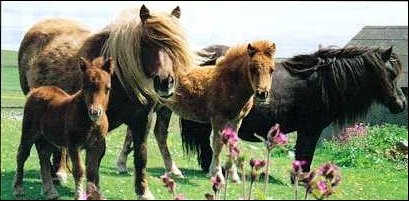 | Herkomst: De Shetland eilanden en de Orkney Eilanden in Noord Schotland. Geschiedenis en informatie: De pony is klein en taai, dit heeft hij te danken aan het koude klimaat en de schaarsheid van voedsel in het gebied waar hij vandaan komt. Op de Shetland Islands groeien geen bomen en de grond is schraal en zuur, waardoor het groen weinig voedingswaarde heeft. De pony is zo ontwikkeld dat hij hier kan overleven. De pony is taai, dit blijkt ook uit de vaak hoge leeftijd die hij kan bereiken |