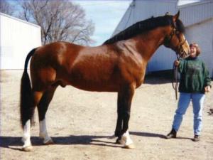 | Ook bekend als: Ierse koudbloed, Iers trekpaard Herkomst: Ierland Geschiedenis en informatie: Het Ierse trekpaard staan bekend als een goed jachtpaarden. Hoewel oude registers of stamboeken ontbreken is het Ierse trekpaard zeker eeuwen oud. Het werd door boeren ontwikkeld als een zwaar tot licht trekpaard dat gebruikt werd voor de meest uiteenlopende doeleinden; ploegen, vrachten verslepen, een wagen naar de markt trekken, het boerengezin op zondag naar de kerk brengen, achter de honden aanrennen bij een jacht. De wortels van de Irish Draught van vandaag gaan terug tot in de achtiende eeuw, maar al lang voor die tijdbrachten Kelten verschillende paarden en pony's mee uit de rest van Europa. Door de hongersnood in Ierland in 1847 nam het aantal van dit ras drastisch af en werd er gekruist met zware Engelse paarden. Dit dreigde het Ierse trekpaard grof te maken. Om het beste van de overgebleven paarden te redden gaf de Ierse regering aan het begin van de twintigste eeuw verschillende subsidies. Hierdoor werd het Ierse trekpaard behoed voor uitsterven. In 1917 ontwierp het ministerie van landbouw een plan voor een stamboek. Er werden 375 merries en 444 hengsten ingeschreven. Ne de tweede Wereld Oorlog nam het ras weer in aantal af door de toenemende mechanisatie. Er was bijna geen werk meer voor de paarden op boerderijen en ook in de handel was er weinig vraag naar. Irish Draughts werden nog wel gebruikt voor de jacht en ze werden met volbloeden gekruisd. In de jaren '70 kwam de redding voor het ras, de Irissh Horse Board, moedigde het fokken van het ras aan. Daarnaast stimuleerde de commissie het kruisen van Irish Draught met andere rassen om goede sportpaarden te krijgen. De in Ierland gefokte paarden hebben een goede kwaliteit, dit komt door de kalksteenrijke weiden waar ze op kunnen grazen. Het land dat vol mineralen zit, zorgt voor sterke beenderen. Uiterlijk: De Irish Draught is groot en gespierd. Hij is vrij stevig, maar ook fraai en harmonieus. Hoofd: In verhouding klein, het profiel is recht en het voorhoofd is breed. De ogen hebben een vriendelijke en verstandige blik. De oren zijn scherp en van een gemiddelde lengte. Hals: De hals is kort tot middelmatig lang en kan vrij dik zijn. Schoft: Deze is vrij duidelijk aanwezig Schouders: Rond en schuin aflopend Borst: Diep en breed Romp: Lang, diep en een beetje ovaal Rug: Van gemiddelde lengte en recht Lendenen: Gespierd Achterhand: Krachtig en schuin aflopend Benen: Hard, sterk en stevig met met sterk ontwikkelde vetlokken, platte beenderen en grote platte gewrichten. De koten zijn kort. Hoeven: Groot en rond Kleur: De meest voorkomende kleuren zijn bruin, zwartbruin, vos en schimmel. Bont is niet toegestaan. Hoogte: Tussen de 1.52 en de 1.73 meter. Beweging: In alle drie de gangen zijn de bewegingen ruim, energiek, voorwaarts en atletisch. Het ras toont een gemiddelde knieactie en behendigheid. De Irish Draught heeft een opvallend springvermogen. Karakter en bijzonderheden: De Irish Draugt is een werklustig prestatiepaard met een betrouwbaar, handelbaar karakter. Hij is rustig, intelligent, actief en moedig. Gebruik: De Irish Draught is zeer geschikt voor het Ierse buitenleven. Het kan op de kleine Ierse boerderijen werken, maar is actief genoeg om voor een wagen te spannen of te worden bereden. Kruisingen met volbloeds hebben dit paard tot een populair en veelzijdig wedstrijdpaard gemaakt. Ook veel jachtpaarden hebben bloed van de Irish Draught. Afstamming: Keltische pony Inheemse en Iersgefokte dieren Europese zware paarden Spaanse paarden Orienraalse paarden Diverse Volbloeden Toelichting: Het ras stamt uit de tijd dat Normandische paarden naar Ierland werden gebracht en werden gekruist met kleinere inheemse rassen. Later werd er Andalusisch en waarschijnlijk Oosters bloed toegevoegd. Dit had een positieve invloed op de kwaliteit en hoogte van het ras. Zeer waarschijnlijk is er later ook bloed van geimporteerde volbloeds toegevoegd, die gekruist werden met de beste Ierse fokmerries.De Draught is het enige oorspronkelijke Ierse paard met vermoedelijk Connemara, Spaanse paarden en Engelse Volbloeds als toegevoegde voorouders. De koudbloedinvloed dateert uit de negentiende eeuw. Bron: De paardenencyclopedie, Josee Hermsen Het paardenhandboek, Judith Draper De Paardenrassenencyclopedie, Susan McBane Irish Draught links: Engelstalig: http://www.irishdraughts.com http://www.oakhillirishdraught.com/ http://www.irishdraughthorse.com/ http://www.orchardhillbreeders.com/ http://www.irishdraughthorses.com/ Uw Irish Draugth link hierbij?? Stuur me een mailtje en het wordt geregeld. Terug |