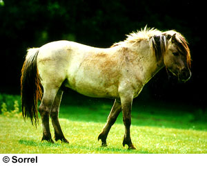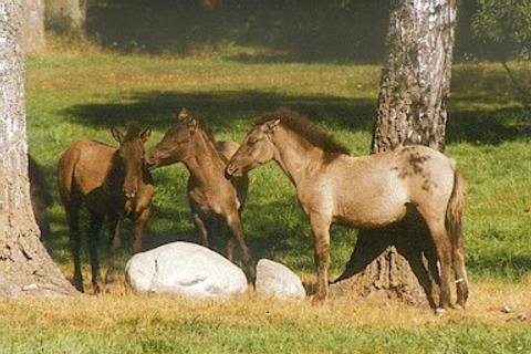| Tarpan Herkomst: Oost Europa en Rusland Geschiedenis en informatie: De Tarpan wordt door velen gezien als de voorloper van het moderne paard. Tot in de negentiende eeuw leefde het paard in het wild. Volgens sommigen stierf de laatste Tarpan in 1919 in gevangenschap. De huidige Tarpan leeft in het halfwild in Poolse reservaten. De Tarpan is gefokt uit de Konik, waar hij sterk op lijkt en hij is een soort reconstructie van de eerste Tarpan. Behalve Konik, is er ook gekruist met przewalski's en er is een paardje ontstaan dat heel erg op de oorspronkelijke Tarpan lijkt. Uiterlijk: De bouw van de Tarpan is lichter dan die van de przewalski. Kleur: Bruin of muisvaal, vaak met aalstreep en/of zebrastrepen Manen en staart: Donker Schofthoogte: Rond de 1.30 meter Bron: Het paardenhandboek, Judith Draper Tarpan links: http://www.ansi.okstate.edu/breeds/HORSES/TARPAN/ http://www.wildlifetrust.org.uk/suffolk/redgrave/fmanagm/ http://pets.thevines.com/leaf/AB12875/2/0/0/&article%5Bid%5D=AA0000001909 |