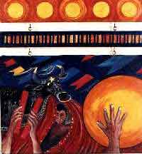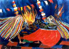 Estas obras fazem parte de uma série de pinturas sobre o bumba-meu-boi que venho produzindo desde 1994.