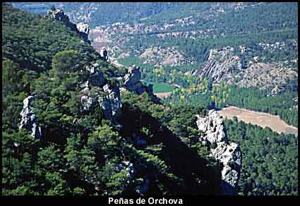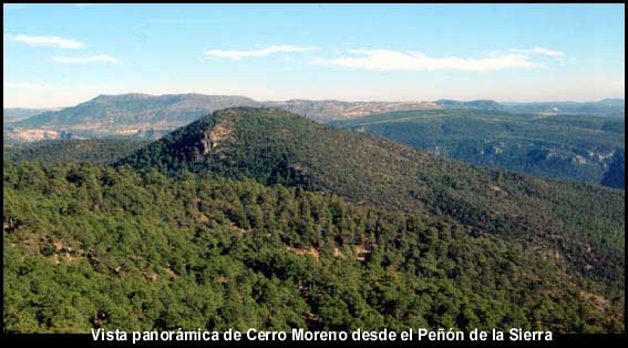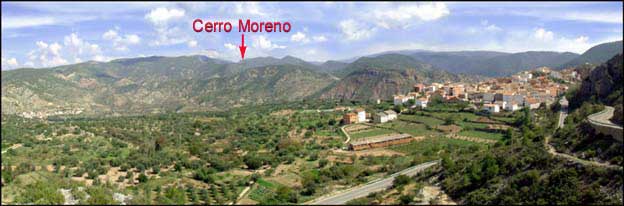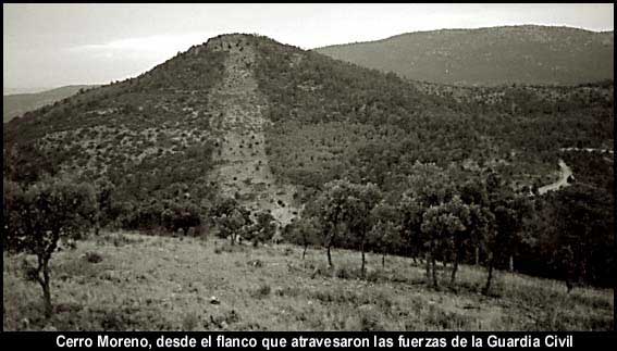 ido a ver a su madre en compañía de Germán. El campamento de Cerro Moreno era uno de los más estables que disponía la AGLA por esas fechas. Otros cercanos estaban situados en Camarena, el Bercoloso, Benagéver, Fuencaliente y Cofrentes. Cerro Moreno es una de tantas estribaciones, de forma redonda, intermedia entre la Sierra de las Cuerdas y la de Javalambre, al sur del Rincón de Ademuz, aspirando el rumor del río Turia que por Santa Cruz de Moya crece joven, se engarganta y serpentea. Cerro Moreno tiene un duro y empinado acceso a pie por sus caras este y oeste, y se halla custodiado en sus vertientes norte y sur por la mole en filo de unos más que respetables peñascos. El campamento guerrillero, el cuarto o quinto de los que hubo por la zona desde 1946, encarado al poniente, mirando hacia Santa Cruz, Manzaneruela, o Landete, situado en una zona boscosa de pinos, enebro y abundante matorral.