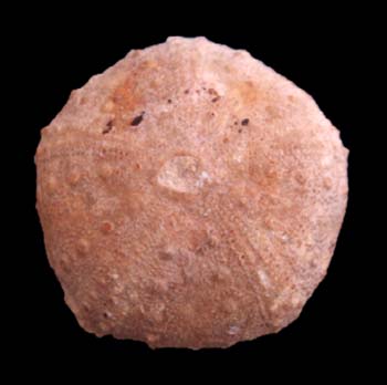 | ESTRATO: LÍAS | TAMAÑO: Alto 1,5 cm y 3,1 cm de Ø | DESCRIPCIÓN: Este erizo, según el Treatise se clasifica como de familia incierta y se asocia de forma provisional con Pedinidae. Muestra un aspecto bastante más plano que los anteriores, conservando el resto de las características del grupo. Se percibe fácilmente la simetría pentarradial que caracteriza a los equinodermos regulares. Otros ejemplares del mismo estrato son más circulares. Ver ficha siguiente. |