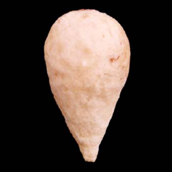 | ESTRATO: VALANGINIENSE | TAMAÑO: 3,5 cm | DESCRIPCIÓN: Pieza bastante desgastada que solo conserva algunos puntitos en la parte superior. Al no haberse localizado más ejemplares es difícil precisar su género. Seguramente corresponderá a algún tipo de cidaris. Por otra parte, tampoco se encuentran restos de los erizos a los que pudiera corresponder . Cosa similar ocurre con las demás radiolas de las fichas anteriores. |