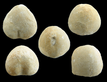| ESTRATO: NEOCOMIENSE | TAMAÑO: Alto, 2,6 cm, largo 2,8 cm y ancho 2,5 cm | DESCRIPCIÓN: (Ver ficha anterior) En este ejemplar fotografiado desde cinco ángulos distintos nos permite conocer todos los detalles de la morfología de la especie. |