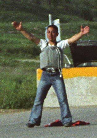 "A Palestinian boy wears an explosive belt..."