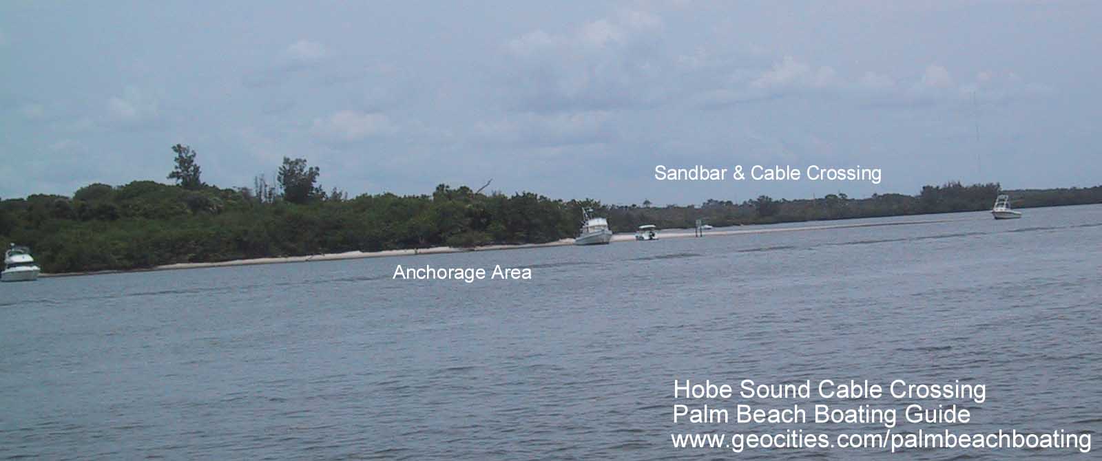| See aerial photo of Hobe Sound. Note that this is this aerial photo is of the northern part of Hobe Sound near the Hobe Sound Bridge. The area discussed here is about 4 miles south of the bridge. This is NOT a photo of the sandbar area. | ||||||||||||||||||||||||