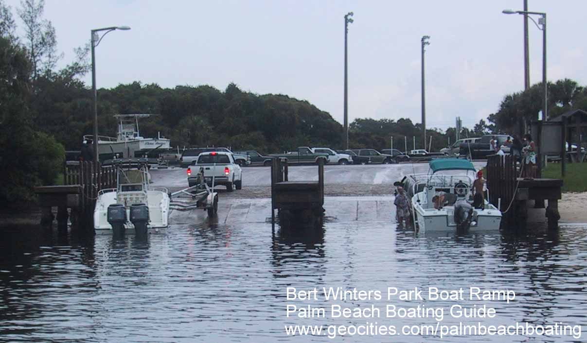 | Photo of Bert Winters Park boat ramp, 13425 Ellison Wilson south of Donald Ross Road in Juno Beach, Florida. Two ramps with access to the Intracoastal Waterway. It�s about a half hour boat ride to the Jupiter Inlet (north) and the Lake Worth (Palm Beach) Inlet (south). This ramp is less congested because of its location. Strong current in the Intracoastal Waterway can make it difficult to maneuver upon your return. Park gates close at night. | |||||||||||||||||||