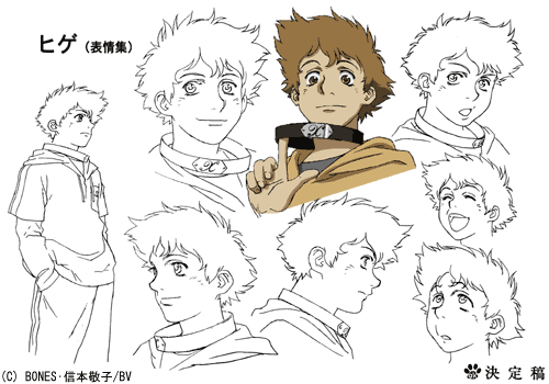 Hige is the joker of the four wolves. He is the tan wolf with the collar. He befriends the other wandering wolf Kiba and journeys towards paradise with him, Toboe, and Tsume. Japanese Seiyuu: Akio Suyama Wolf Form: Original Art Sketch: |