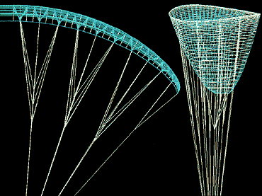 翼形隔間(翼肋)的通氣孔,來平衡傘翼內部的空氣壓力。當空氣進入翼形隔間後,傘翼會形成一個半鋼體,通過