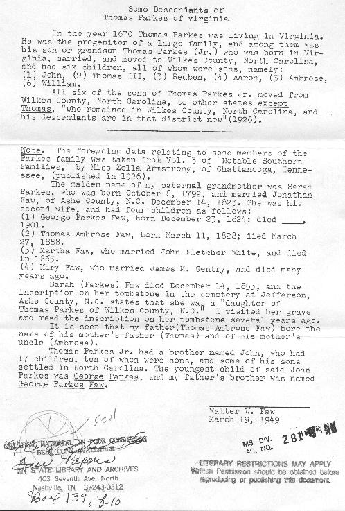 Parks Family Genealogy