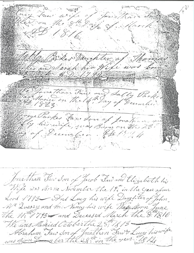 Faw Family Bible - Image, Faw Gravestone - Image