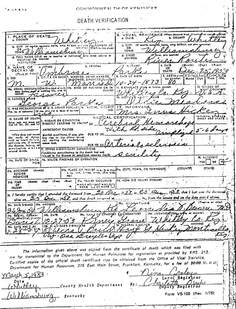 6 Wade Hampton Parks ( - 4 Mar 1940)
