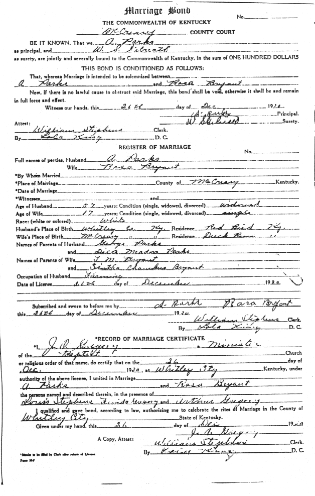 Noble Annella Parks and Delpha Lee Wells Marriage License - Image