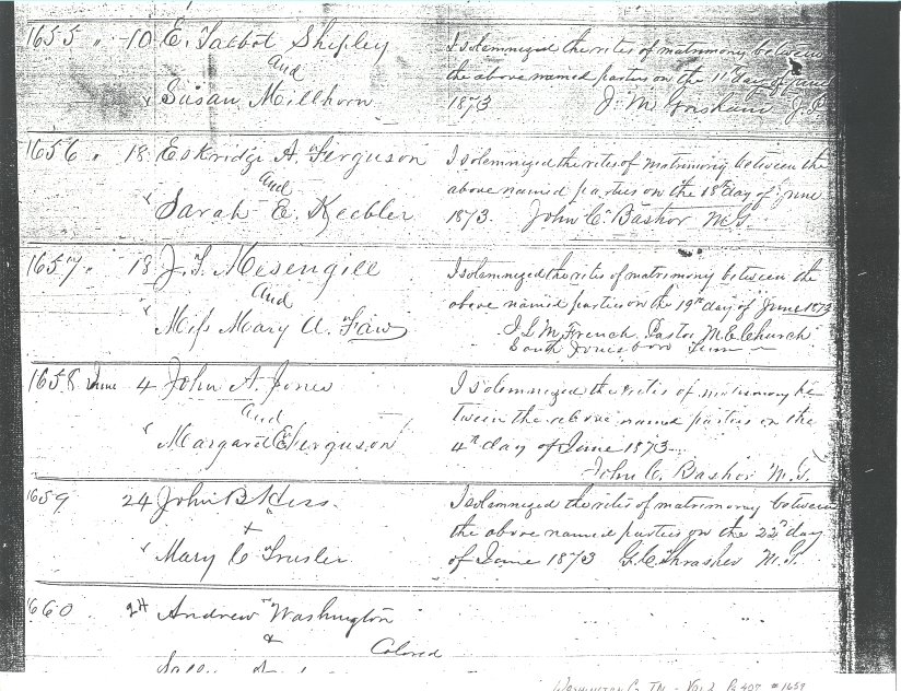 5 Matthias Wagner, 4 Winnefred Johnson, 3 Mary Parks, 2 Thomas Jr/II, 1 Thomas I