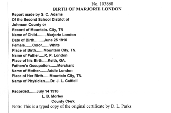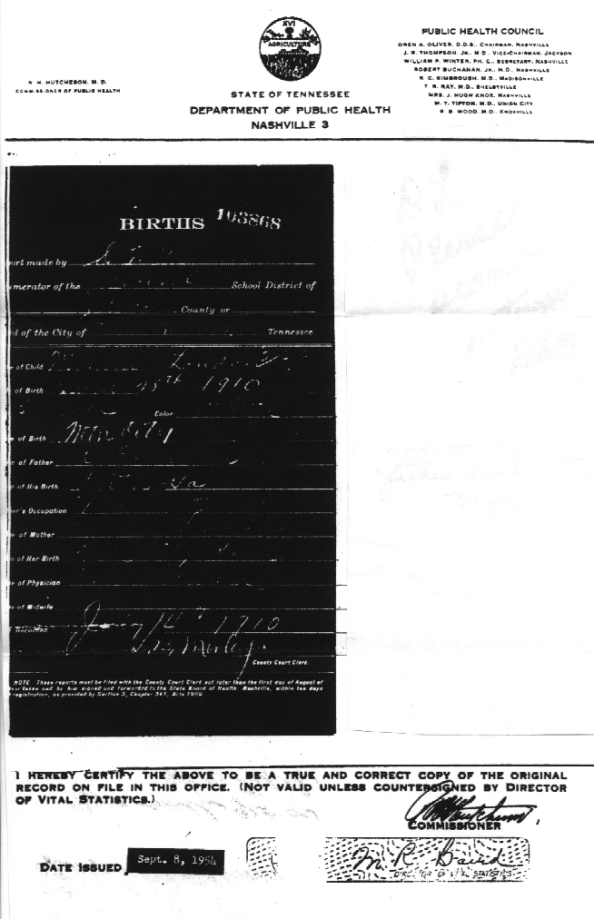 Birth Certificate - Contact D.L. Parks, Submitted by D.L.