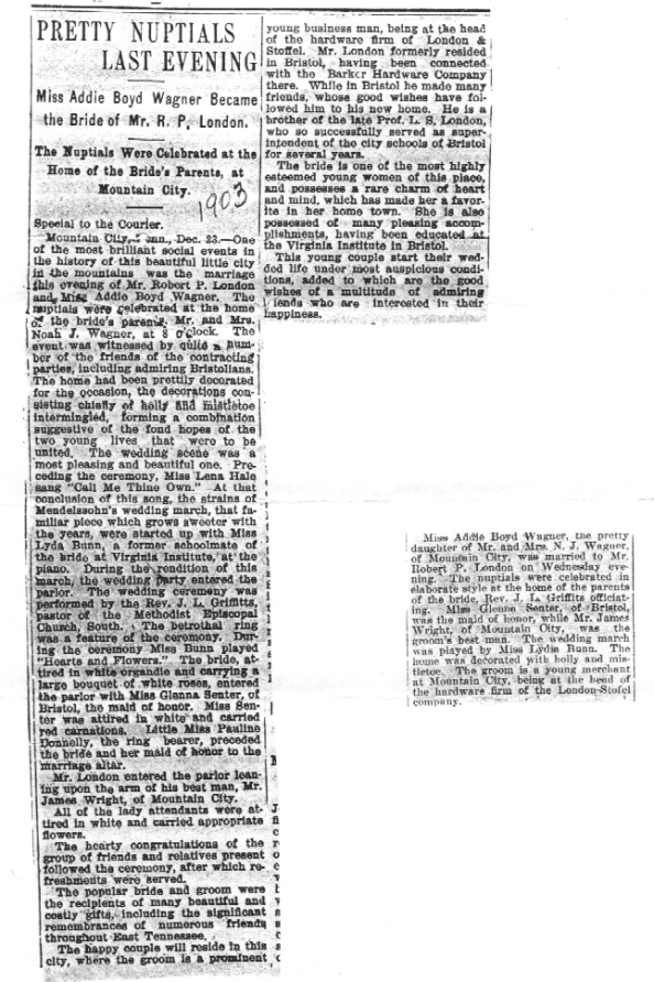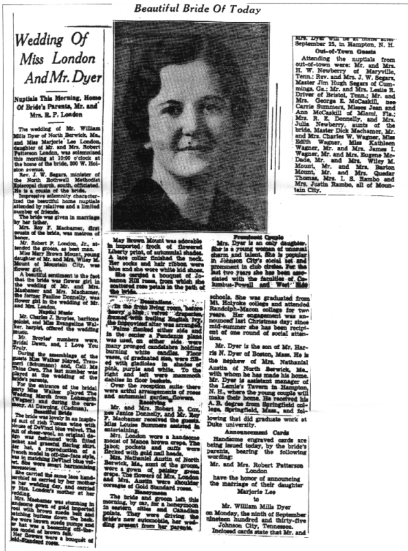 Nuptial Article - Image, Obituary of Mrs. Robert P. London - Image Submitted by Debby Neves
