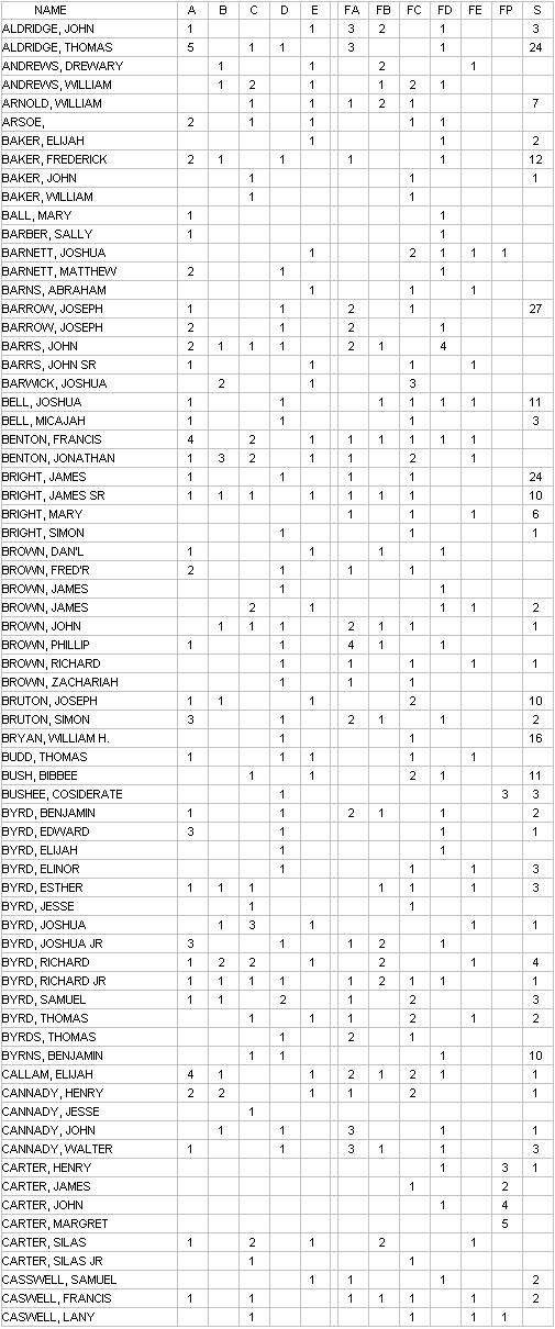 I have transcribed the surnames the sames as they appear in the census.  Each census taker spelled differently, so they may be spelling defferences.