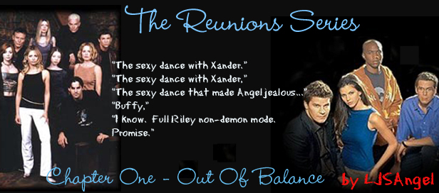 SERIES: The Reunions Series AUTHOR: LJSAngel EMAIL: [email protected] DISCLAIMER: Yeah right. If I owned them, the world would be a happier place with an Angel that's human and kicks ass. Also he would be locked in my house. TIMELINE: Past "Eternity" on AtS and Faith is still comatose so it's before "This Years Girl" SPOILERS: Up to the one metioned on BtVS and opposite on Angel. SYNOPSIS: Angel and the gang find an imbalance bringing them back to the Hellmouth, again. Buffy has trouble telling Riley she loves him. AUTHOR'S NOTES: This is my first major series. Need feedback. Lot of work. Ectera. FEEDBACK: Does the word DUH mean anything to you? RATING: PG-13 aka 12 RELATIONSHIP (This part): Buffy/Riley; Anya/Xander; Hints of Buffy/Angel CONTENT: One occurence of swearing, little bit of violence.. yada yada yada DEDICATION: To fanfic! May we live and prosper! The Reunions Series Chapter One ~ Out Of Balance