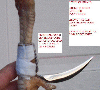 tsampoy`s knife length measurement.flyers using longer knives (higher red dot)in mediumhigh point knife design.grounders using shorter knives(lower red dot) in medium point knife design to avoid any hang and for the shufflers to get in and out (in penetration) easily.notice that in measuring the length of knife the drop of knife is alligned to the prop toe.the two red dots in knee joint area is the two referral points for flyers and grounders fighting style.i prefer the medium high point knife which is a lil bit longer(higher red dot marker) for cocks that hit a lot in the air.to each his own.