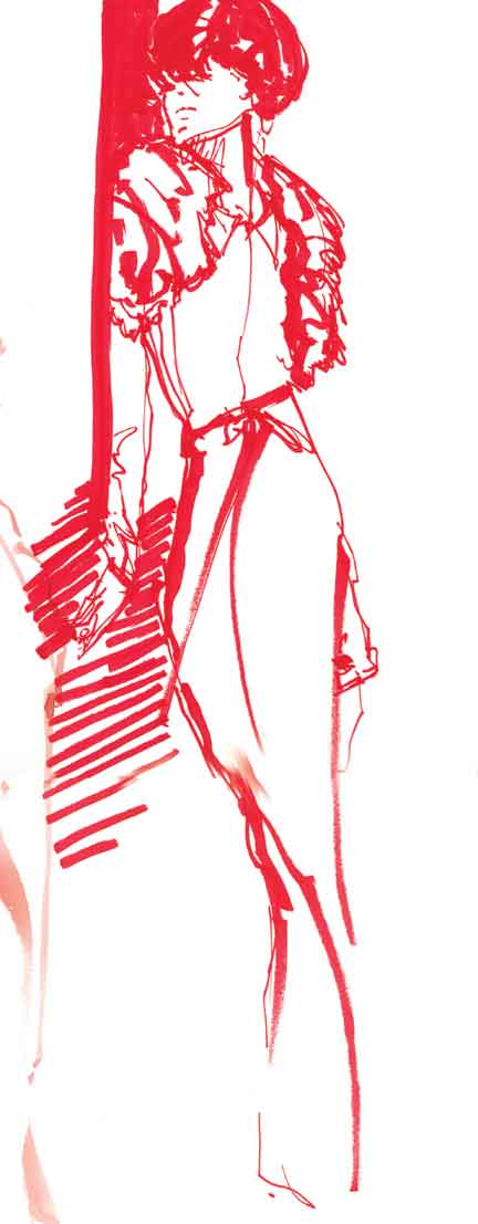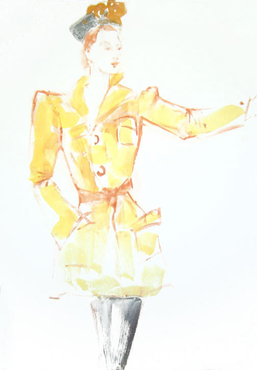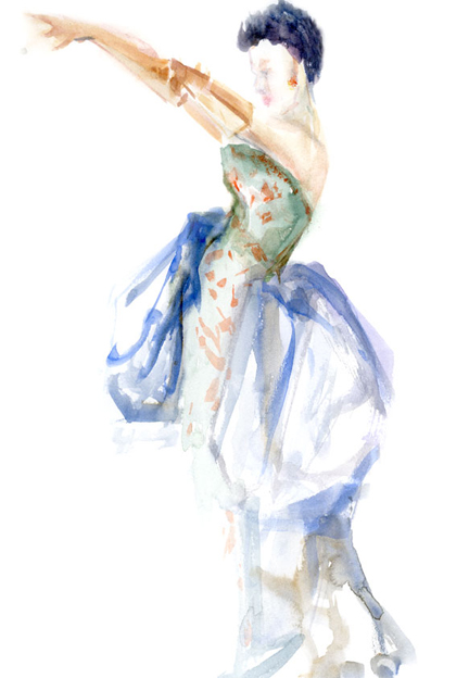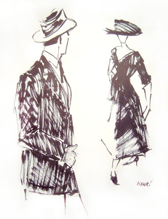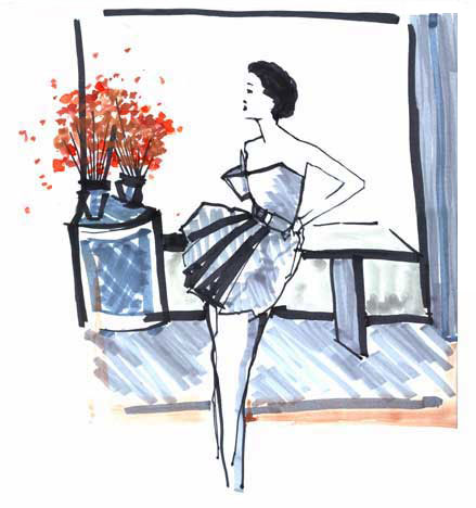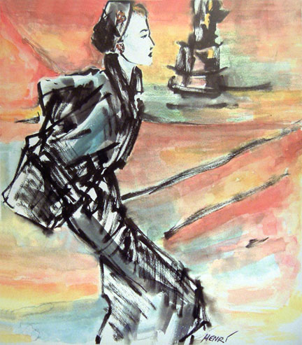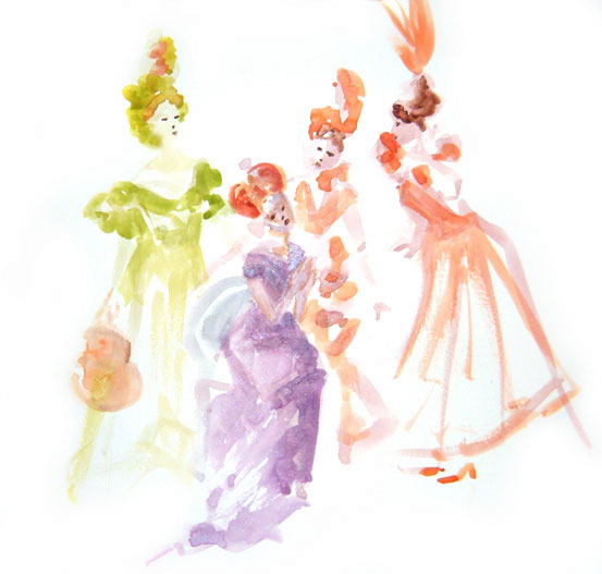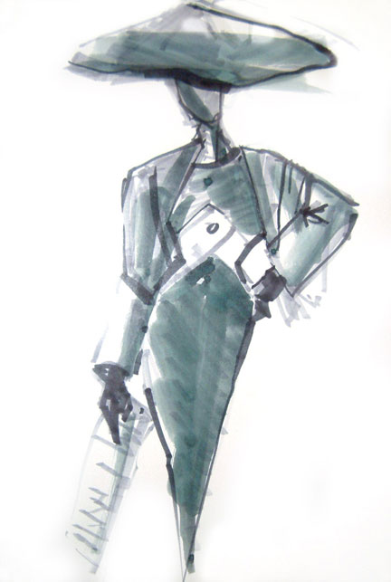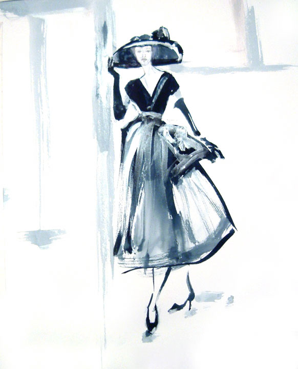 A unique take on depicting fashion figures from the 1940s through the 1960s defines Paula Blum’s nostalgic ink and watercolor renderings. In a time when photography dominates the visual depiction of fashion,these paintings set a stylish precedent—a nod to the past accomplishments of bygone fashion illustrators. “I see fashion painting as a genre among the tradition of fine arts that is sorely missed today", says Blum. "My goal is to depict the style of fashion figures with finesse from a courteous more civilized time."