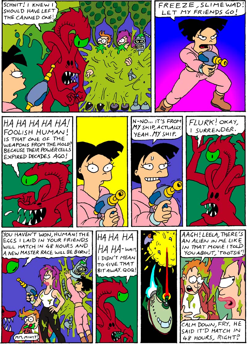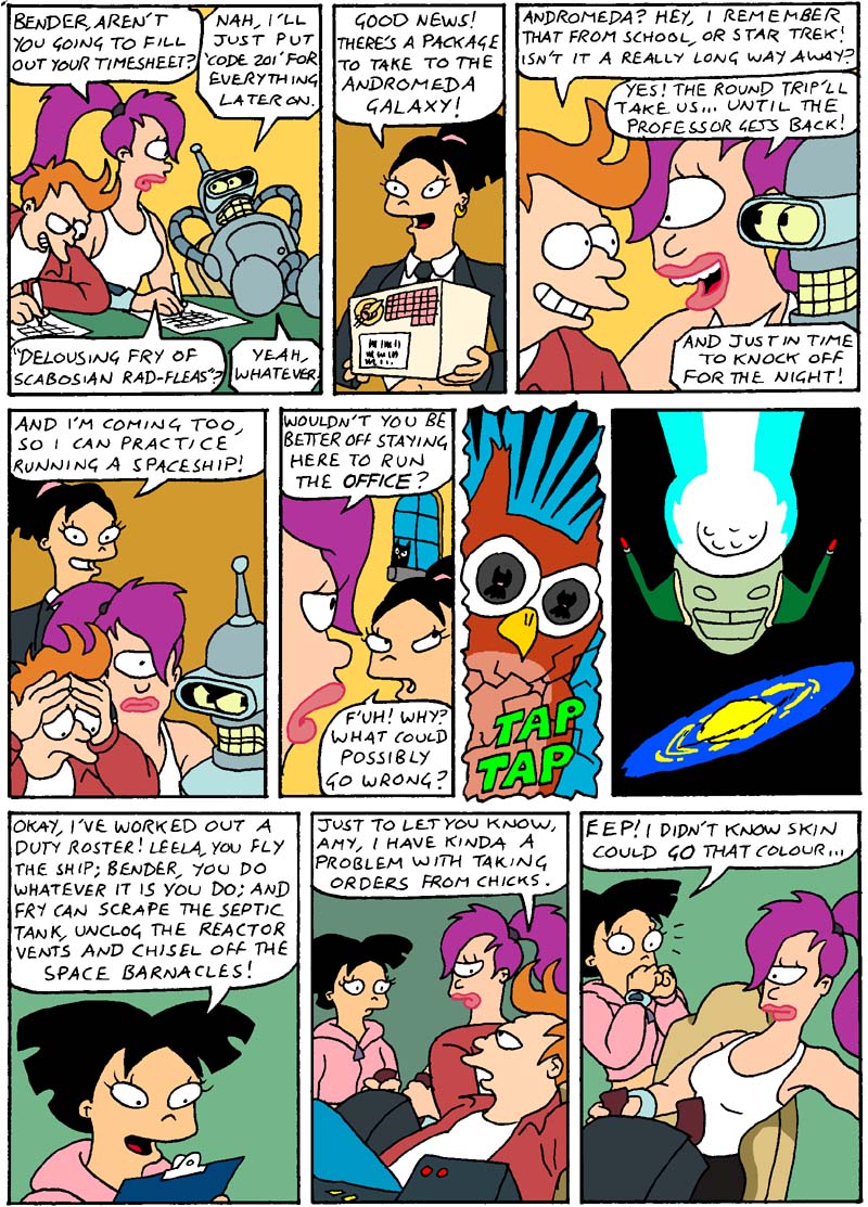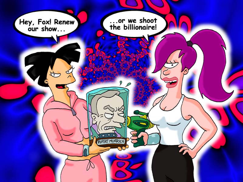 My little contribution to the campaign -- put it on your desktop! Stick it to The Man! Andy's "Save Futurama!" wallpaper: (1024 x 768) (800 x 600) Episodes are rated on a scale of 1 to 5 pellets of Dark Matter -- New episode reviews will be added as they air on Sky.
