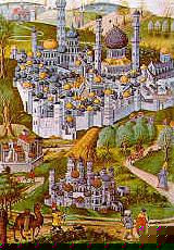 | Por um século e meio, Jerusalém foi uma pequena cidade de província. Esse quadro modificou-se radicalmente, quando o Imperator bizantino Constantino transformou Jerusalém em um centro cristão. A Basílica do Santo Sepulcro (335), foi a primeira de um grande número de majestosas construções que se ergueram na cidade.. | |
