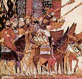 | Os cruzados conquistaram Jerusalém em 1099, massacraram seus habitantes judeus e mulçulmanos e fizeram de Jerusalém a capital do reino. Sob o domínio dos cruzados, sinagogas foram destruídas, velhas igrejas foram reconstruídas e muitas mesquitas transformadas em templos cristãos. Os cruzados dominaram Jerusalém até 1187, quando a Cidade foi conquistada por Saladino, o Curdo. | |