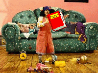 It's time to clown around with Loonette and Molly.....a clown and her dolly! This is my tribute to The Big Comfy Couch. It's a great show on PBS, but it's kind of new. If you haven't seen it yet, make sure to watch it! I love it when Loonette does the clock stretch! If you know of any Big Comfy Couch websites that I don't know of, e-mail me and let me know.