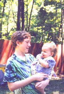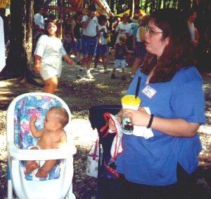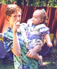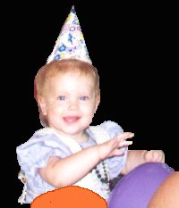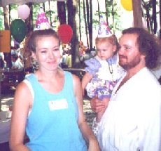 This is me at my first bithday party! We had it at The Great Lakes Medieval Faire on July 25th, 1999! It was lots of fun! All the actors came to wish me a happy birthday! I love them all! My Daddy works there as an actor in the summer too. If you ever come to Ohio, make sure to go to the Medival Faire and see it...it's a lot of fun!
