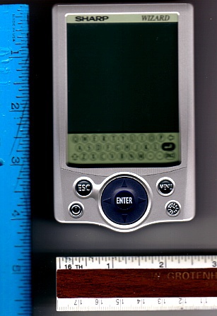 The OZ-800 is a really handy size, and will easily fit into a shirt pocket. The measurements are 4 1/4 inches by 2 5/8 inches (10.5 by 6.54 cm). Here is a scan with two rulers next to the unit: