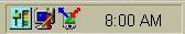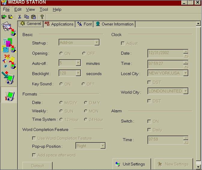 On the CD that comes with the unit, there are two major pieces of software, with which you connect and synchronize with your PC. One is called "OZ-800 Synchronization Software," and the other is called "Wizard Station." Here is the little icon (an image of the OZ-800 with a blue arrow and a red arrow) placed at the bottom of your screen, right hand corner, that opens the synchronization software: