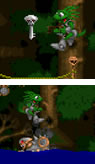 A missão deste nível é passar para o lado esquerdo da floresta, onde estão os chefes, mas para isso é preciso passar por uma porta que está trancada. A chave está no subsolo, junto com um ficha em forma de moeda que você vai precisar para poder usar um trampolim (encontra-se bem à direita da tela). Ativando-o, você alcançará a parte mais alta das árvores, lugar onde você não conseguiria subir pelo lado da floresta. Cuidado para não cair lá de cima, porque se descer terá que percorrer todo o trajeto novamente até o trampolim. No topo das árvores, quando você finalmente achar a porta, e a abrir, poderá passar para o lado esquerdo da barreira. Lá encontrará mais inimigos e também cinco Tank´s, os chefes da fase. Agora basta vence-los para continuar a sua jornada!