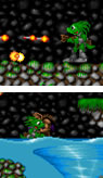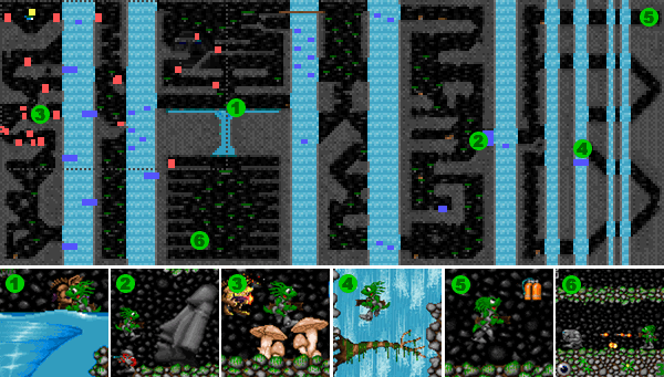 oinho do lago, pois você morrerá se tentar atravessar sem este item. Para achar este tubo de oxigênio, você deverá passar por diversas barreiras. Uma delas é uma grande cabeça de pedra que funciona como uma porta. Para a abrir é necessário acionar um grande botão que fica em outra parte da fase. Ao mergulhar com o tubo de oxigênio, você poderá atravessar a passagem do lago, e assim chegar até onde está o chefe da fase, o inofensivo Rockman. Ele não tentará feri-lo, mas produzirá clones que vão tentar aniquilar você. Neste lugar há também cabeças de pedra diferentes das que existem durante a fase, que jogam bolas de fogo que seguirão você. Tenha cuidado, meu amigo!