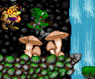 o, muita vegetação e musgos característicos de paisagens úmidas. A fase é perigosa por causa das inúmeras quedas d’água onde o Guimo morrerá se cair até atingir o seu limite. Além dos tradicionais personagens há também dois tipos de inimigos que se encontram somente neste nível: cabeças de pedra fixas no chão (disparam raios quando você passa pela sua frente) e cogumelos aparentemente inofensivos (deixam o Guimo descoordenado temporariamente quando nele encostam, dando a impressão de ser uma alucinação provocada seu veneno).