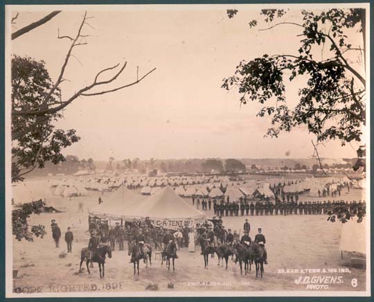 of the camp with a YMCA tent in the foreground.
