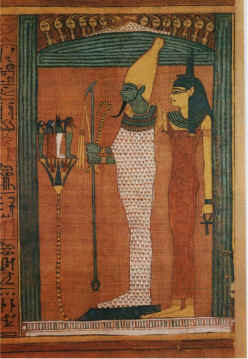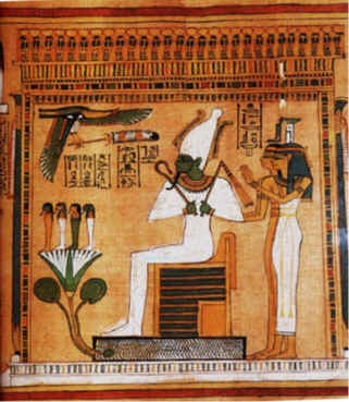 of Osiris from the nineteenth dynasty papyrus of Ani. Isis stands slightly