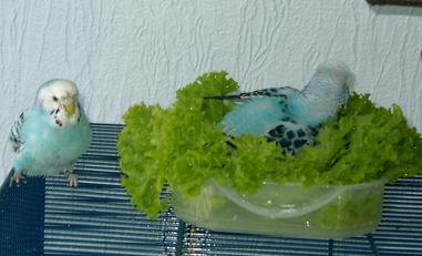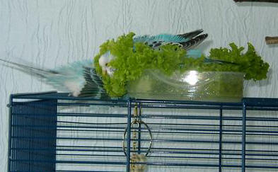 lechuga mojada en la bañera, y una vez que el periquito aprenda a